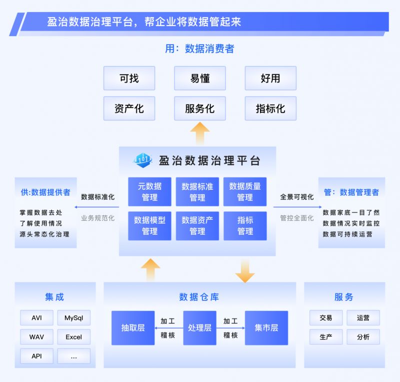 盈治數(shù)據(jù)治理平臺(tái)——企業(yè)數(shù)據(jù)建設(shè)、治理、運(yùn)營(yíng)一體化平臺(tái)。幫助數(shù)據(jù)提供者掌握數(shù)據(jù)去處、了解數(shù)據(jù)使用情況;幫助數(shù)據(jù)管理者了解數(shù)據(jù)家底、實(shí)現(xiàn)數(shù)據(jù)可持續(xù)運(yùn)營(yíng);幫助數(shù)據(jù)使用者方便、快捷地挖掘數(shù)據(jù)、理解數(shù)據(jù)和使用數(shù)據(jù),促進(jìn)企業(yè)數(shù)據(jù)質(zhì)量提升,加速企業(yè)數(shù)據(jù)流通共享。
