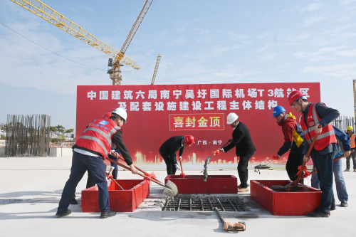 12月19日,中建六局中建橋梁南寧吳圩國際機場T3航站樓站前綜合體項目主體結(jié)構(gòu)全面封頂,標(biāo)志著項目在優(yōu)質(zhì)履約進(jìn)程中邁出堅實一步,穩(wěn)步進(jìn)入二次結(jié)構(gòu)及裝飾裝修施工階段。