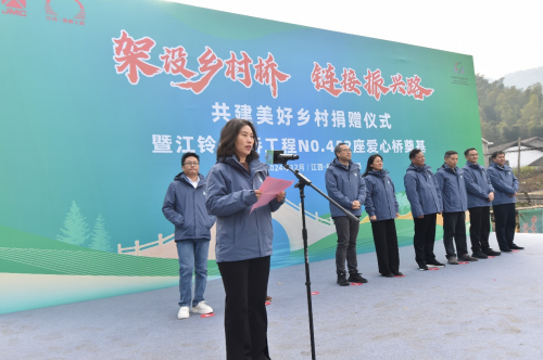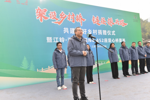 12月22日,江鈴·溪橋工程共建美好鄉(xiāng)村捐贈儀式暨第452座愛心橋奠基在江西省撫州市資溪縣彭田村舉行,江鈴汽車股份有限公司、中國鄉(xiāng)村發(fā)展基金會、江西萬物生汽車科技有限公司等合作伙伴共同見證。