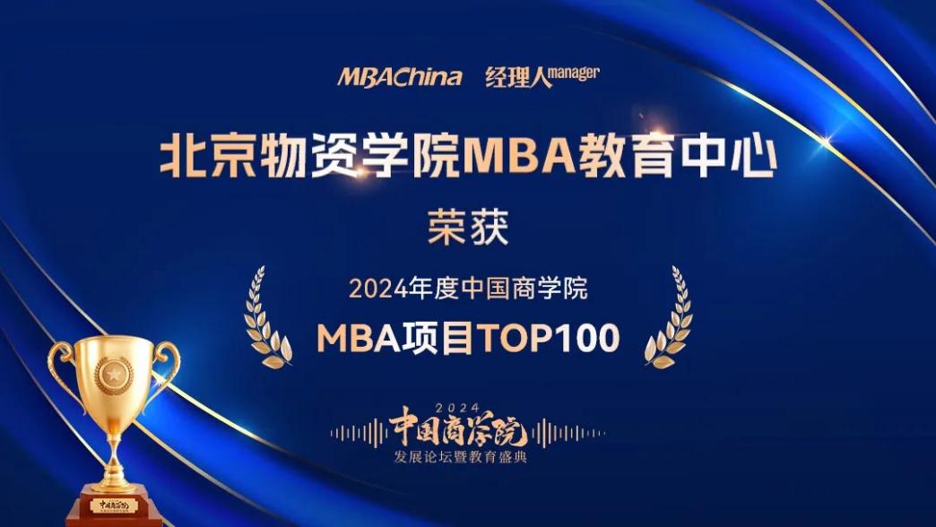 本次盛典現(xiàn)場,MBAChina和《經(jīng)理人》雜志重磅發(fā)布了“2024年度中國商學院MBA項目TOP100”榜單。北京物資學院MBA教育中心卓越的綜合實力榮耀上榜,榮獲“2024年度中國商學院MBA項目TOP100”殊榮。