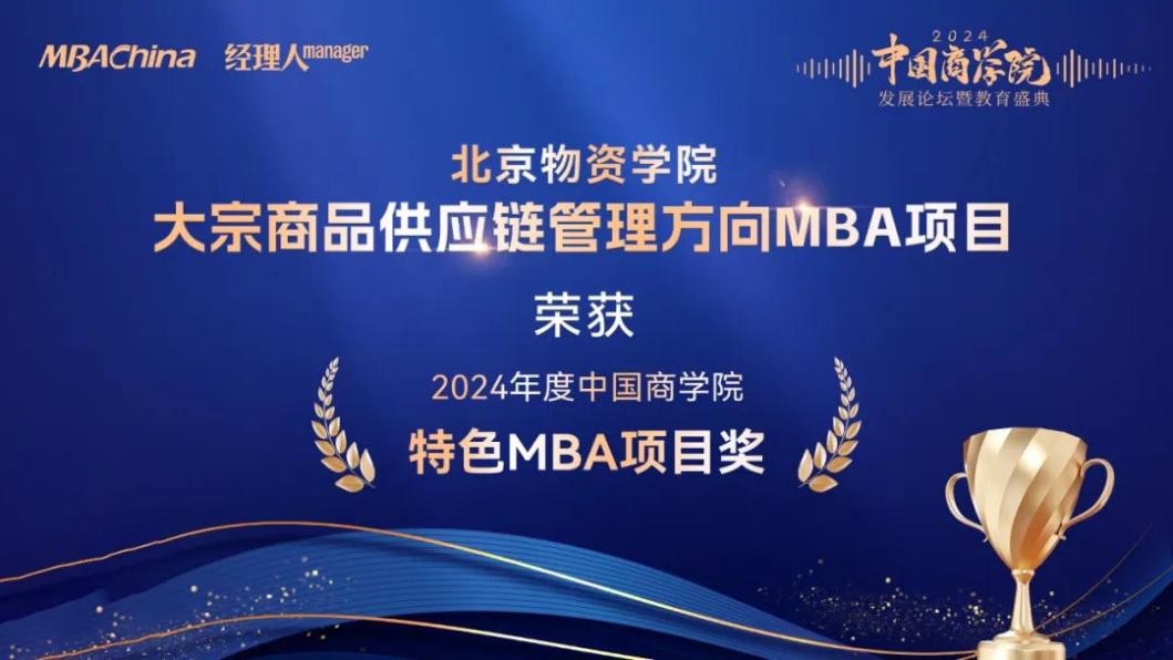 瞬息萬變的商業(yè)時代,商科教育不僅是知識的傳遞,更是創(chuàng)新思維的孵化場。中國商學院,作為培養(yǎng)未來商業(yè)領袖的搖籃,正以前所未有的活力與創(chuàng)造力,探索并實踐著各具特色的MBA教育模式。此次盛典發(fā)布了“2024年度中國商學院特色MBA項目獎”。北京物資學院大宗商品供應鏈管理方向MBA項目憑借其在大宗商品供應鏈管理模式、價值分配、風險防范、整合優(yōu)化及數(shù)智化解決方案等方面的深入研究及創(chuàng)新,榮獲“2024年度中國商學院特色MBA項目獎”!