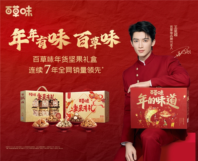 在年貨節(jié)的營銷熱潮中,百草味精準(zhǔn)把握時(shí)代脈搏,重磅官宣青年男演員王星越成為品牌代言人,再度強(qiáng)化了品牌在年輕群體心中的年味形象。