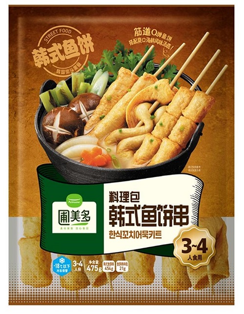 圃美多的韓式魚餅串,棒形魚餅魚糜含量≥78%, 方形魚餅和蔬菜魚餅魚糜含量≥63%,筋道Q彈,鮮味十足。產(chǎn)品包含韓式方形,棒形及蔬菜魚餅三種經(jīng)典款式。湯料包以鰹魚和蔬菜等熬制而成,帶有清淡爽口的海鮮風味,呈現(xiàn)出經(jīng)典韓式口感。這些食材采用零下40°C急速冷凍工藝,牢牢鎖住食材原始鮮味。