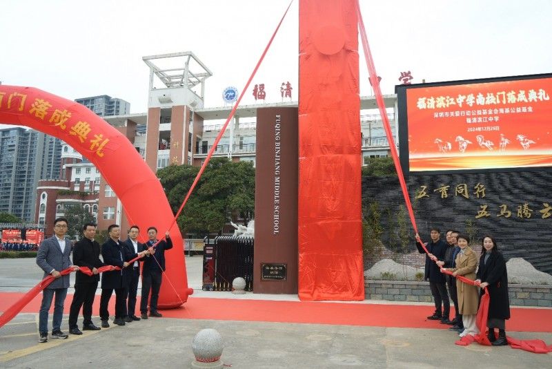 12月26日上午,由深圳市關(guān)愛行動公益基金會?;婊鹁杞ǖ母G鍨I江中學(xué)校門揭牌儀式在福清市龍江河畔舉行。深圳市關(guān)愛行動公益基金會總監(jiān)陽海軍,海基集團副總經(jīng)理、?;婊鸸芪瘯魅五X振中,海基集團總助李聞杰與福清濱江中學(xué)書記、校長王為善及該校師生代表出席揭牌儀式。