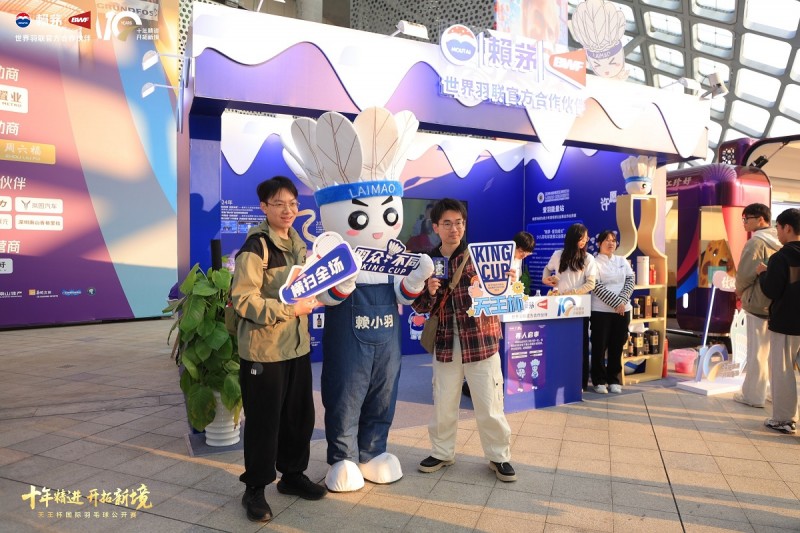 賴茅IP形象“賴小羽”以展位運營人員的身份亮相天王杯嘉年華區(qū)域,憑借其萌趣可愛的外形和幽默風趣的互動風格,迅速成為現(xiàn)場觀眾的“團寵”。