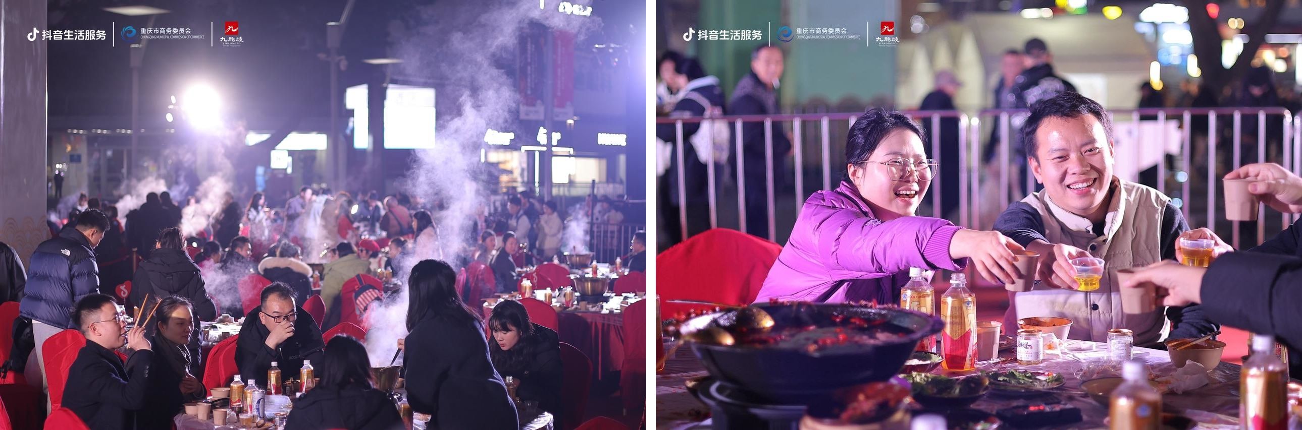 為幫助商家解決以上問題,把握更多生意高峰節(jié)點(diǎn),抖音生活服務(wù)依托平臺(tái)“流量場(chǎng)”和豐富玩法資源,打造雙月【抖音生活火鍋季】系列活動(dòng)。為了激活更多人的冬日火鍋消費(fèi)興趣,12月20日-22日期間,在重慶市商務(wù)委、重慶市九龍坡區(qū)人民政府指導(dǎo)下,抖音生活服務(wù)聯(lián)合九龍坡區(qū)商務(wù)委舉辦了一場(chǎng)盛大的迎新2025重慶火鍋歡樂節(jié)。
