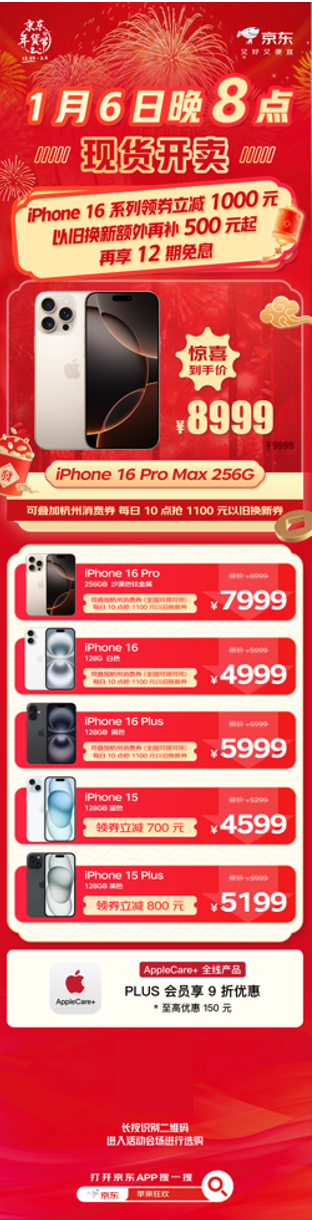 新年前想要入手Apple產(chǎn)品,建議選擇京東年貨節(jié),不管是追求新款iPhone,還是入手MacBook、iPad等產(chǎn)品,在京東都能找到又好又便宜的產(chǎn)品。還等什么呢?趕緊來京東搜索“蘋果狂歡”領(lǐng)券吧,1月6日晚8點(diǎn)現(xiàn)貨開賣,買到就是賺到!