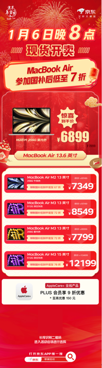 此外,部分地區(qū)的用戶在購買Apple產(chǎn)品時(shí)還可使用國家補(bǔ)貼,MacBook Air參與國補(bǔ)后更是低至7折。MacBook Air 13.6英寸 M2(256GB)驚喜到手價(jià)只需6899元,MacBook Air M2 13英寸(256GB)領(lǐng)取國補(bǔ)后到手低至67折,7349元就能帶回家;MacBook Air M3 13英寸領(lǐng)取國補(bǔ)后到手價(jià)低至72折,512G版到手只需8549元,256G版到手7799元;MacBook Air M3 15英寸(512GB)領(lǐng)取國補(bǔ)后到手只需12199元。