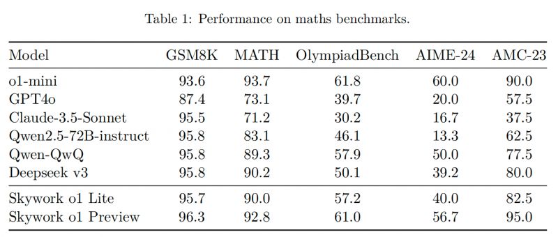 表1丨Skywork o1在數(shù)學(xué)基準(zhǔn)評測上的表現(xiàn)