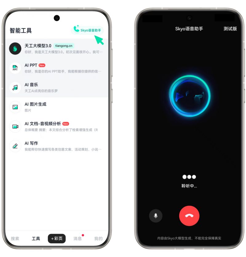 圖丨天工APP中Skyo入口與界面(來源:昆侖萬維)
