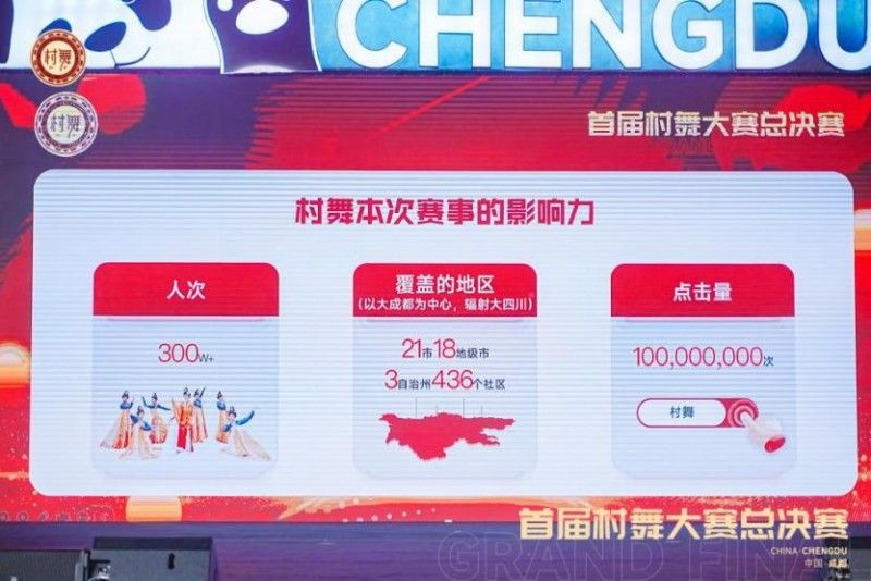 首屆“村舞”大賽于2024年9月面向全國(guó)發(fā)布,并在川渝地區(qū)開設(shè)海選、初賽、復(fù)賽等環(huán)節(jié)。短短3個(gè)月的時(shí)間里,首屆“村舞”賽事已取得超過300萬人次的關(guān)注與加入;以大成都為中心,影響力輻射大四川21個(gè)市級(jí)單位、18個(gè)地級(jí)市、3個(gè)自治州以及超過400個(gè)社區(qū);海選、初賽、復(fù)賽、全部舞隊(duì)舞蹈在線點(diǎn)擊量過億。也有包括:漢族、苗族、侗族、彝族、傣族、藏族、維吾爾族、蒙古族、羌族等超過20個(gè)民族加入此次賽事。