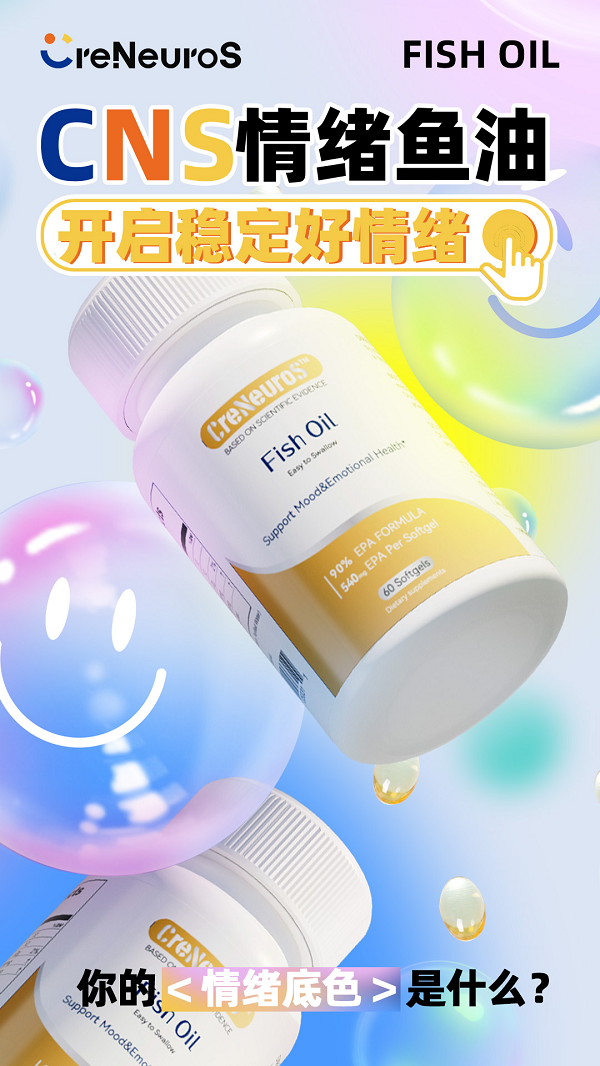 在成功開創(chuàng)情緒魚油這一創(chuàng)新品類,引領情緒營養(yǎng)管理進入1.0時代后。近日,CreNeuroS品牌再次邁出重要步伐,宣布正式進入情緒營養(yǎng)管理2.0時代,其CNS情緒魚油迎來了全面升級(以下稱為CNS情緒魚油Plus)。此次升級從情緒障礙的發(fā)病機理出發(fā),在90%高含量EPA的基礎上,進一步添加了活性葉酸、鋅、維生素D3、維生素B2、維生素B6、維生素B12、維生素C、鎂等多種復合營養(yǎng)元素。這些營養(yǎng)元素通過多種作用機制調節(jié)神經炎癥、降低炎癥因子水平,從而輔助改善抑郁狀態(tài),為消費者提供更為全面的情緒健康管理方案。