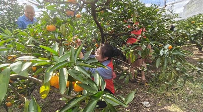 一群身穿紅色馬甲的香溢志愿者的到來,為老李驅(qū)散了老李心中的陰霾。志愿者們分散開來,穿梭在茂密的橘樹間,動作干練而迅速。有人負(fù)責(zé)采摘,有人負(fù)責(zé)分裝,有人負(fù)責(zé)搬運(yùn),分工明確,配合默契。陽光透過樹葉的縫隙,灑在他們忙碌的身影上。