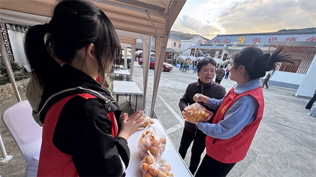 集市上,各種農(nóng)產(chǎn)品琳瑯滿目。志愿者小俞站在攤位前,熱情地向過往的顧客介紹著:“這橘子是我們剛從橘園摘的,非常新鮮,甜度剛剛好,嘗一嘗吧!”她一邊說著,一邊剝開橘子給顧客試吃。