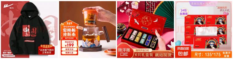 傳統(tǒng)文化包含了豐富的歷史故事、哲學(xué)思想、藝術(shù)形式等,通過國(guó)潮的創(chuàng)新表達(dá)讓更多人能夠感受到中國(guó)文化的魅力。在春節(jié)這樣一個(gè)傳統(tǒng)與現(xiàn)代的交織點(diǎn),人們?cè)谝再N年畫、看戲曲、買繡品等古樸的方式承襲年俗外,也通過購買具有國(guó)潮元素的產(chǎn)品拉滿春節(jié)的氛圍感。