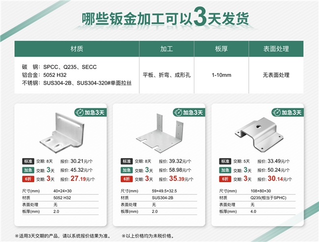 不僅如此,針對部分不銹鋼材質(zhì)的平板加工,米思米 meviy還有最快1天發(fā)貨的加急服務(wù),能很好地解決不少企業(yè)的緊急需求!
