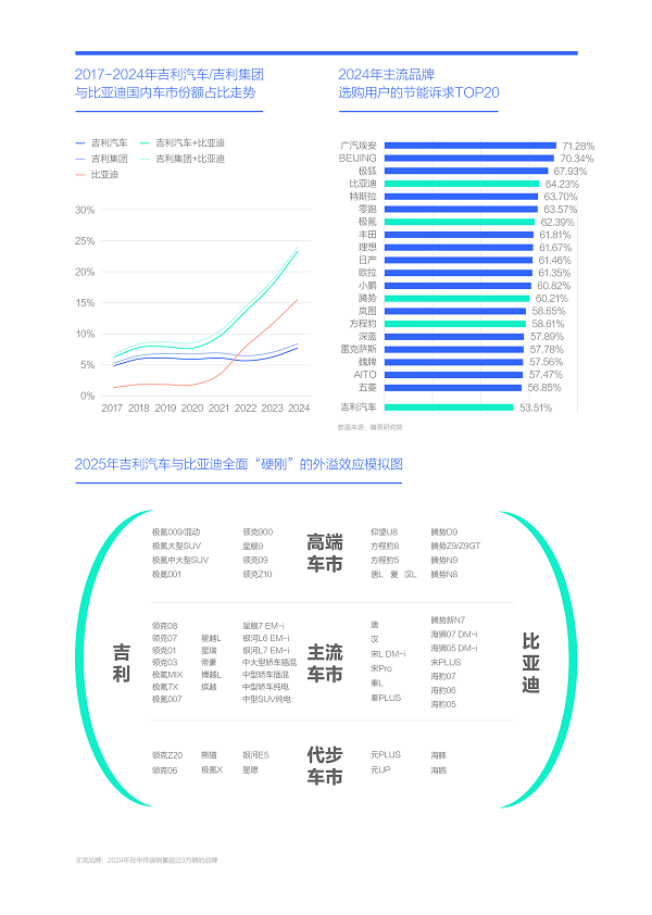 2024年吉利與比亞迪占了中國品牌近40%份額,兩者“硬剛”將重塑中國品牌陣營與助推2025-2026年中國品牌全面節(jié)能化