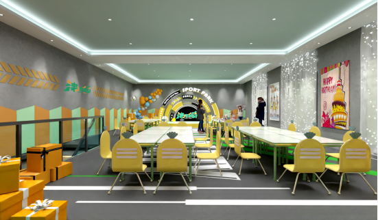 蹦床公園:拆除舊倉庫部分墻體,打造高挑空蹦床館,增強互動娛樂感。