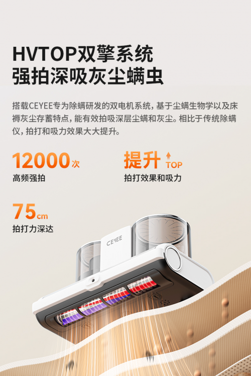希亦除螨儀之所以能夠在眾多同類產(chǎn)品中脫穎而出,得益于其搭載的6大硬核黑科技。從高頻拍打到超聲波滲透,再到UV-C殺菌、負(fù)壓吸附、熱風(fēng)干燥以及深層凈濾技術(shù),這六大技術(shù)協(xié)同作戰(zhàn),共同構(gòu)建了一個(gè)全方位、深層次的除螨體系。在高頻拍打的作用下,塵螨被有效拍打下來(lái),隨后被強(qiáng)大的吸力所吸走。超聲波滲透技術(shù)則能夠深入織物纖維,瓦解螨蟲倒鉤抓力,實(shí)現(xiàn)更深層次的清潔;而UV-C殺菌與熱風(fēng)干燥技術(shù),則進(jìn)一步確保了除螨效果的徹底性,讓家居環(huán)境更加健康、安全。