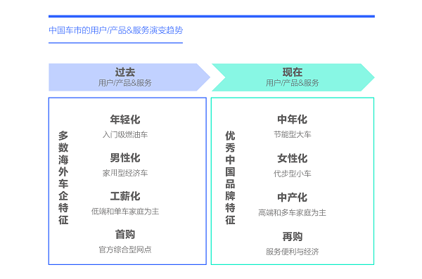 中國車市加速中年化,滋生出節(jié)能、大車等新需求,但不少海外車企仍陶醉于年輕化,產(chǎn)品升級滯后中年化,品牌力被透支