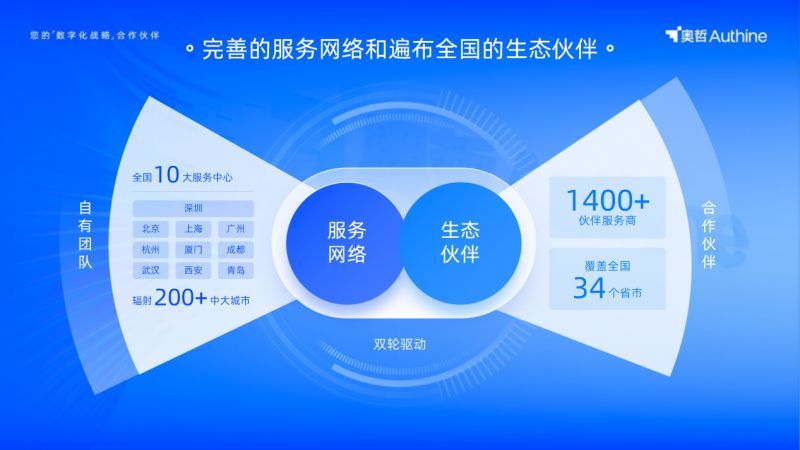 在服務(wù)保障上,奧哲已構(gòu)建完善的服務(wù)網(wǎng)絡(luò)和遍布全國(guó)的生態(tài)伙伴,建立了北京、上海、廣州、深圳、成都、武漢、杭州、青島、西安、廈門(mén)十大服務(wù)中心,通過(guò)高效的資源整合和協(xié)同能力,以上述服務(wù)中心為節(jié)點(diǎn)可全面覆蓋并輻射全國(guó)200多個(gè)大中型城市,敏捷響應(yīng)客戶需求。