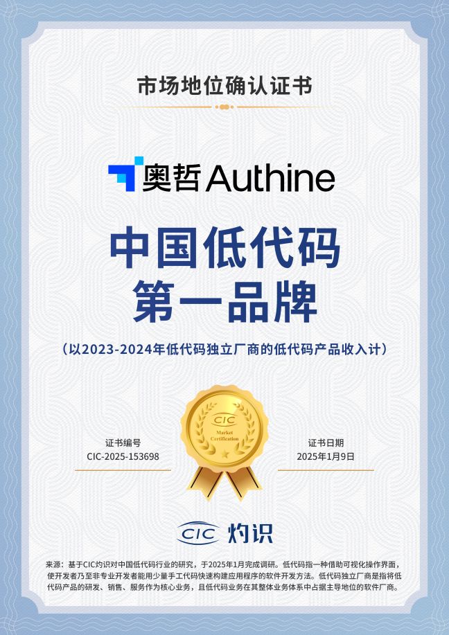 近日,知名咨詢機(jī)構(gòu)CIC灼識(shí)咨詢就中國(guó)低代碼行業(yè)開(kāi)展了專(zhuān)項(xiàng)的系統(tǒng)性研究,對(duì)低代碼行業(yè)競(jìng)爭(zhēng)格局、產(chǎn)品類(lèi)型、產(chǎn)品功能等方面進(jìn)行了詳盡調(diào)研與深度分析,最終確認(rèn)奧哲作為低代碼獨(dú)立廠商“中國(guó)低代碼第一品牌”的市場(chǎng)地位,彰顯了奧哲作為低代碼行業(yè)領(lǐng)軍者的卓越實(shí)力。