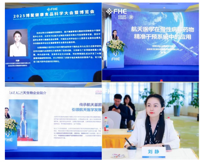 會(huì)議期間,空間生物主動(dòng)健康研究院院長、航天健康管理與慢病非藥物聯(lián)合干預(yù)研究中心主任、北京東方紅航天生物技術(shù)股份有限公司首席營養(yǎng)專家劉靜博士,發(fā)表了題為《航天醫(yī)學(xué)在慢性病非藥物精準(zhǔn)干預(yù)系統(tǒng)中的應(yīng)用》的專題演講。