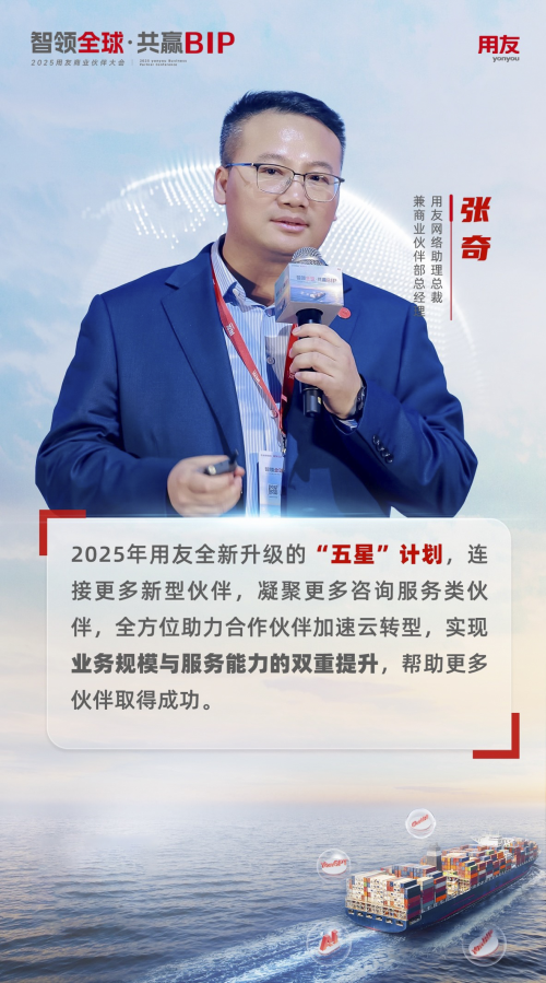 用友網(wǎng)絡(luò)助理總裁兼商業(yè)伙伴部總經(jīng)理張奇先生進(jìn)一步解讀了2025年用友商業(yè)伙伴策略。他回顧了2024年的卓越成果,并分享了伙伴們在云轉(zhuǎn)型過程中取得的顯著成績,特別感謝伙伴們的支持,表示2024年YonSuite業(yè)務(wù)超額達(dá)標(biāo),進(jìn)一步鞏固了市場領(lǐng)導(dǎo)地位。