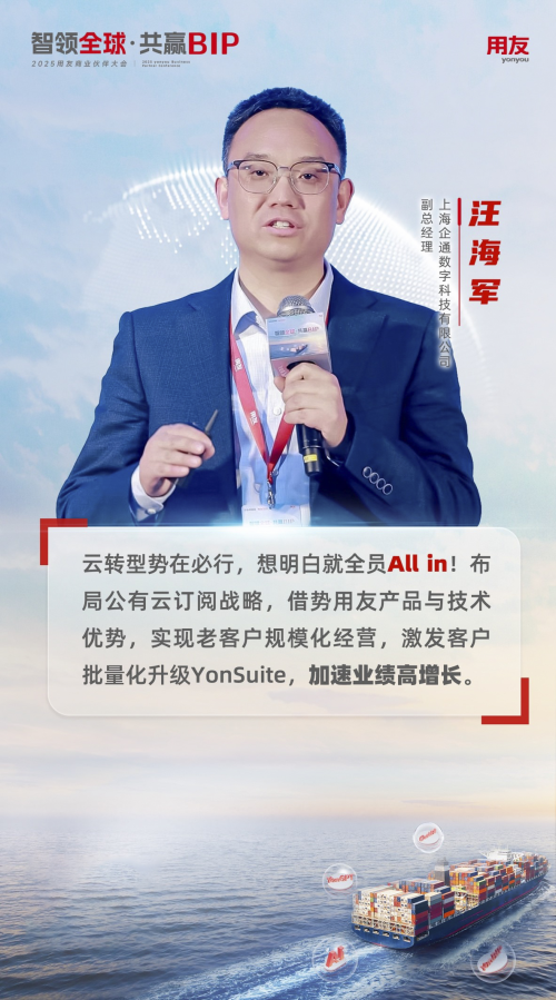 用友超新星伙伴上海企通數(shù)字科技有限公司副總經(jīng)理汪海軍先生以“布局公有云訂閱戰(zhàn)略 實(shí)現(xiàn)逆風(fēng)增長”為主題,深入剖析了企通在云轉(zhuǎn)型道路上的探索與實(shí)踐。汪海軍先生結(jié)合企通自身的轉(zhuǎn)型歷程,分享了云轉(zhuǎn)型過程中遇到的挑戰(zhàn)、關(guān)鍵決策以及寶貴的成功經(jīng)驗(yàn)。他重點(diǎn)闡述了如何結(jié)合自身業(yè)務(wù)特點(diǎn),制定有效的YonSuite云轉(zhuǎn)型戰(zhàn)略并實(shí)現(xiàn)了業(yè)績高增長,以及如何在組織架構(gòu)、人才培養(yǎng)、技術(shù)創(chuàng)新等方面進(jìn)行變革,以適應(yīng)云時(shí)代的發(fā)展。他的分享內(nèi)容務(wù)實(shí),為現(xiàn)場伙伴提供了可借鑒、可復(fù)制的云轉(zhuǎn)型思路。
