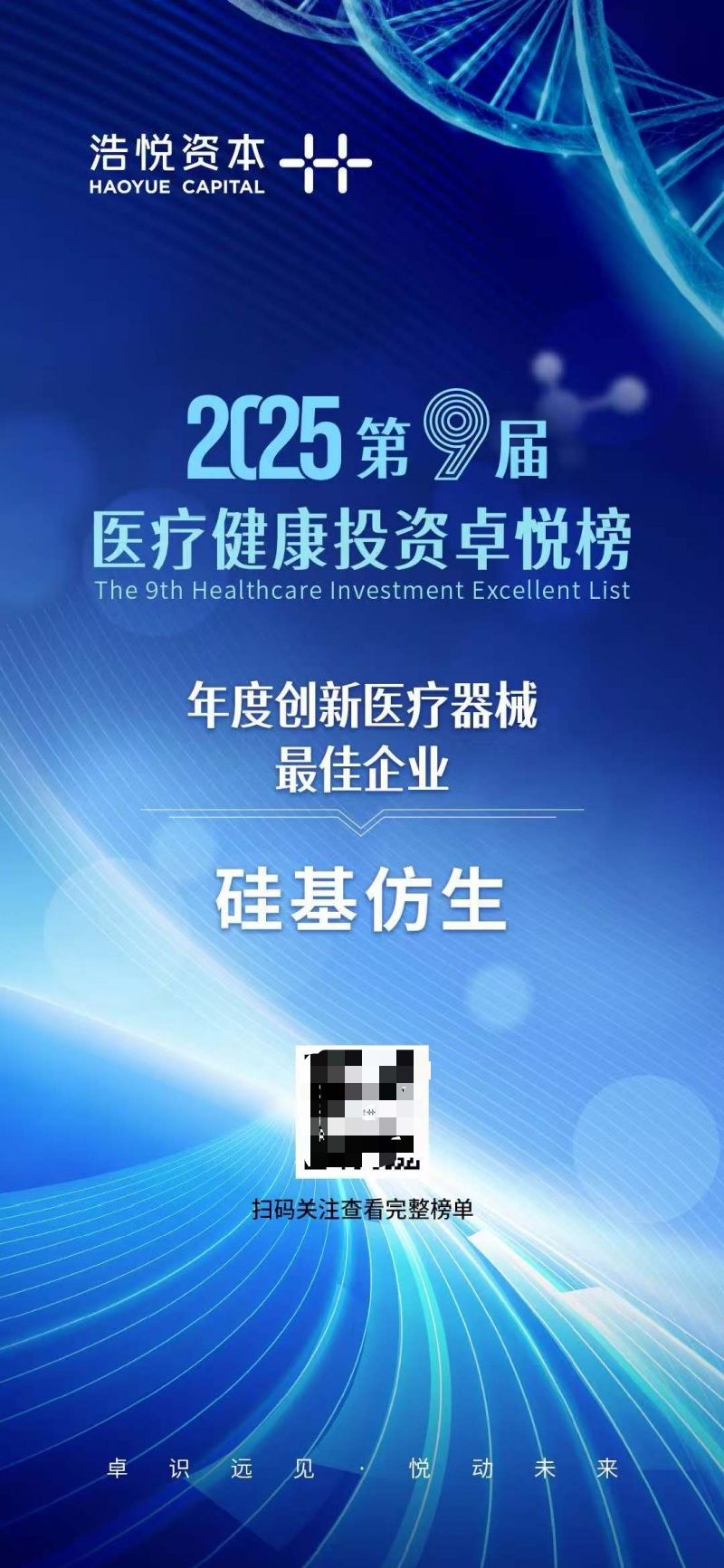 2025年7月30日,浩悅資本正式發(fā)布了“第九屆醫(yī)療健康投資卓悅榜”,深圳硅基仿生科技股份有限公司(簡稱“硅基仿生”)憑借在創(chuàng)新醫(yī)療器械領(lǐng)域的卓越表現(xiàn),榮膺 “年度創(chuàng)新醫(yī)療器械最佳企業(yè)”獎項,成為行業(yè)聚焦的標(biāo)桿力量。