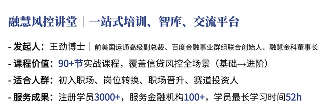 更多專業(yè)風(fēng)控課程、行業(yè)價(jià)值報(bào)告及行業(yè)新聞資訊,請登陸【融慧風(fēng)控講堂】官網(wǎng)查看學(xué)習(xí)。