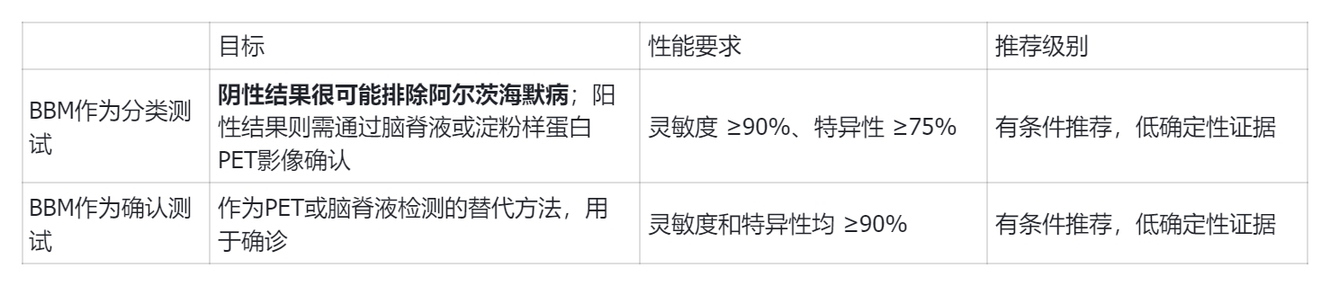 表1:AAIC 2025 AD血液生物標(biāo)志物指南:關(guān)鍵性能要求與應(yīng)用場景