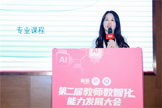 新道科技股份有限公司助理總裁劉莉聚焦“解鎖數(shù)智能力:數(shù)智時(shí)代高校教師專(zhuān)業(yè)發(fā)展新路徑”進(jìn)行分享。她表示,產(chǎn)業(yè)“智”變呼喚人才“質(zhì)”變,數(shù)智時(shí)代下,新質(zhì)人才需要更懂產(chǎn)業(yè)、更懂?dāng)?shù)據(jù)、更懂技術(shù),“人工智能”與“產(chǎn)教融合”能力是高校教師數(shù)智化能力提升的核心,也是實(shí)現(xiàn)專(zhuān)業(yè)發(fā)展的關(guān)鍵所在。劉莉在演講中介紹了新道“學(xué)-行-研-評(píng)”四維一體的教師數(shù)智化能力培養(yǎng)模式中的以學(xué)筑基:“四融合”教師數(shù)智化能力提升內(nèi)容體系;以學(xué)筑基:定制研修,推動(dòng)教師數(shù)智化深度共進(jìn);以研促創(chuàng):新道課程設(shè)計(jì)與教學(xué)方法論;以評(píng)增效:數(shù)智名師工程,打造教學(xué)標(biāo)桿等內(nèi)容。最后,她正式發(fā)布新道賦能專(zhuān)項(xiàng)行動(dòng)計(jì)劃:U8數(shù)智煥新、合作師資招募、課題發(fā)布、AI+產(chǎn)業(yè)賦能。