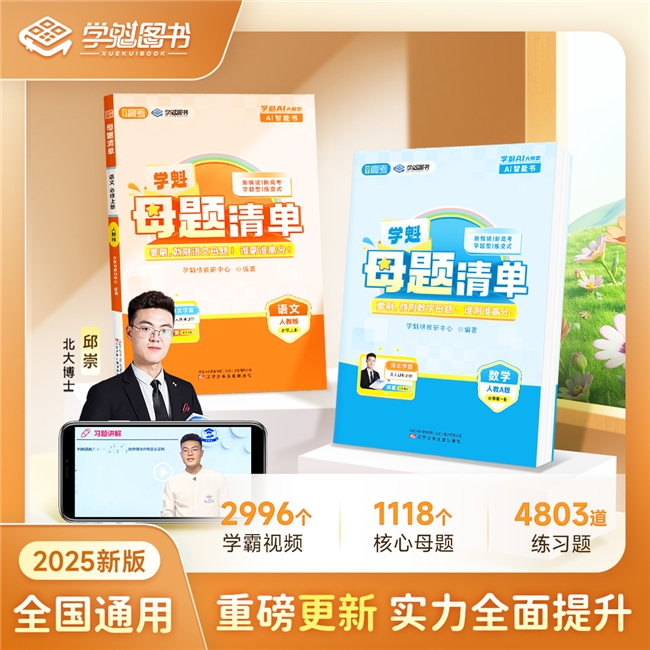 考慮到不同地區(qū)教材差異,升級(jí)版《學(xué)魁母題清單》還對(duì)版本做了區(qū)分。人教版、北師大版,不同地區(qū)不同版本,學(xué)生可以根據(jù)自身需求靈活選用。精準(zhǔn)匹配教材,教學(xué)無縫銜接,學(xué)生學(xué)起來得心應(yīng)手,效率更高!