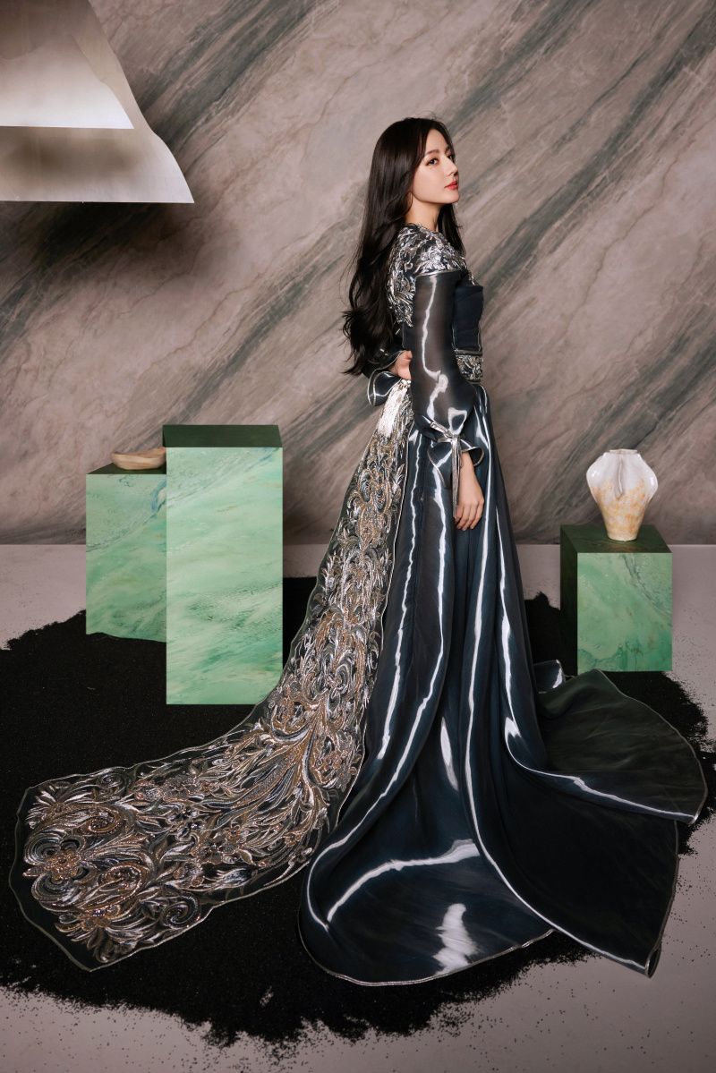 這次解鎖全新身份,迪麗熱巴再次身著她與冠珠瓷磚的老朋友——高級定制服裝設(shè)計(jì)師、“中國高定第一人”郭培的兩件作品,兩套高定禮服裙皆是以融合手法表現(xiàn)東方主題。銀色緞面的流光裙來自于郭培2016春夏的高級定制系列,以西方宮廷式樣、卷草紋與大量花朵圖案來襯托不同姿態(tài)的傳統(tǒng)東方技法刺繡的鳳凰圖案,用西式宮廷紋樣的厚重端莊來凸顯“鳳凰于飛”的華貴典雅。