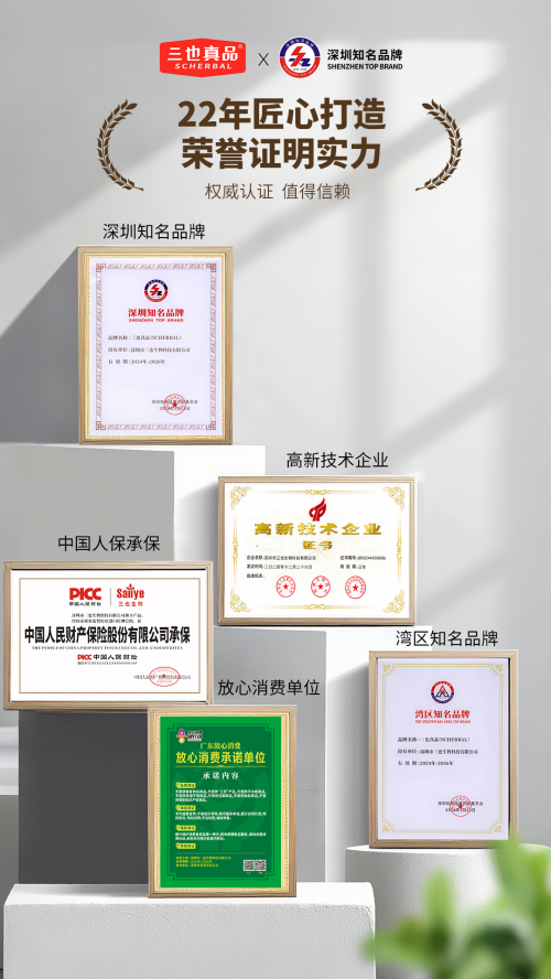國家高新技術(shù)企業(yè)、深圳知名品牌、專精特新、人保承保——三也生物22年榮譽等身,是品質(zhì)與信譽的象征。嚴格的ISO、HACCP、食品安全三大國際認證管控,確保產(chǎn)品安全可靠。20000+成功代理商網(wǎng)絡(luò)驗證成熟市場模式與強大扶持體系。