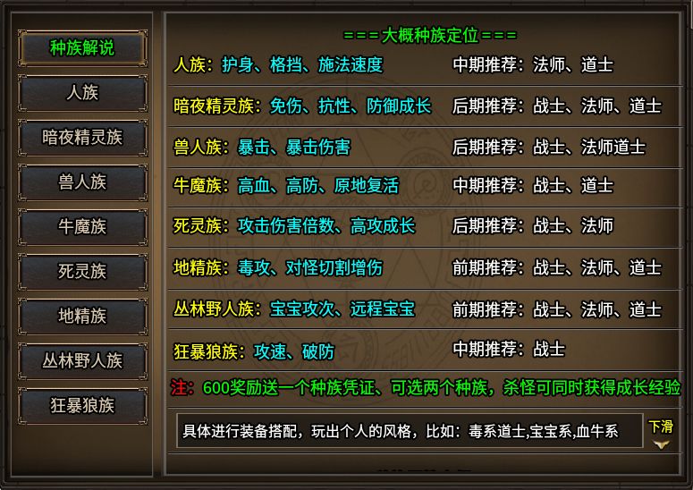 全服不單單只是傳奇三職業(yè)定位,它還加入了暗黑的種族體系,玩家創(chuàng)建角色進(jìn)入游戲后,即可選擇。種族類型有八種,每個種族都有各自的特色定位,有擅長護(hù)身格擋的人族,也有強(qiáng)輸出暴擊的獸人族、也有擅長毒攻和切割的地精族等等。