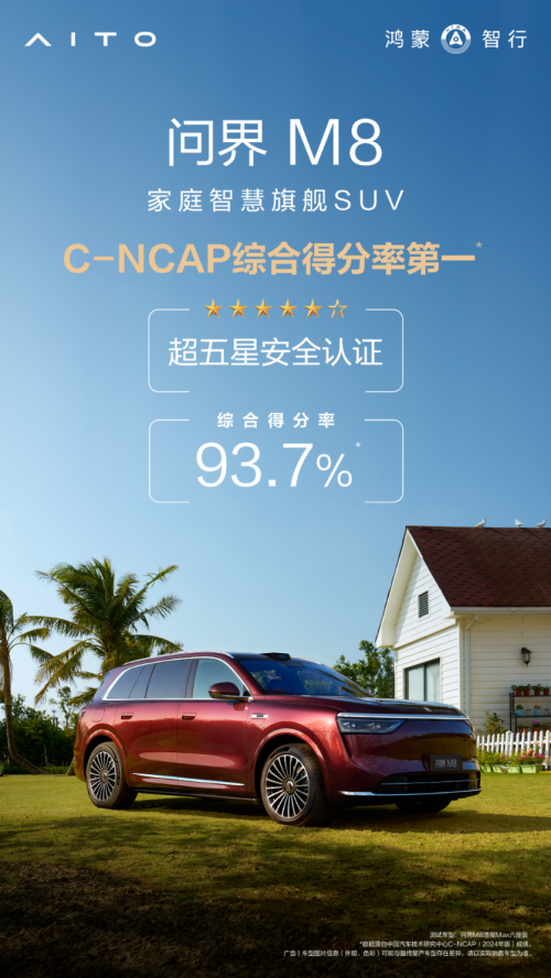 近日,中汽中心C-NCAP最新一期碰撞測試成績公布,問界M8榮獲超五星安全認(rèn)證,綜合得分率第一,驗(yàn)證了賽力斯智能安全體系的領(lǐng)先技術(shù)實(shí)力。