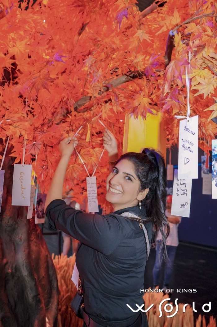 (海外玩家在《王者榮耀世界》展區(qū)“掛福簽”許愿)