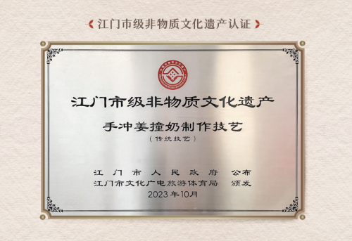 趙記傳承的故事始于一門家傳手藝。趙氏家族五代人傳承糖水技藝,其獨門絕活——手沖姜撞奶制作技藝,在2022年和2023年先后被列入江門市蓬江區(qū)區(qū)級和江門市市級非物質(zhì)文化遺產(chǎn)代表性項目名錄。