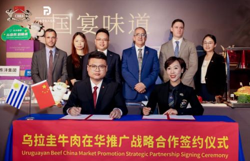 當天,烏拉圭國家肉類協(xié)會主席Gastón Scayola、INAC代表Christian Shaw、烏拉圭駐亞洲經(jīng)理蔡佳欣(Victoria)、烏拉圭駐廣州總領(lǐng)事Facundo及代表伍詩悅(Dora)到訪東灃食品集團廈門總部。雙方就推動烏拉圭牛肉在華推廣進行了深度交流,并見證了東灃食品集團與廈門鑄型者體育戰(zhàn)略合作計劃的簽署。