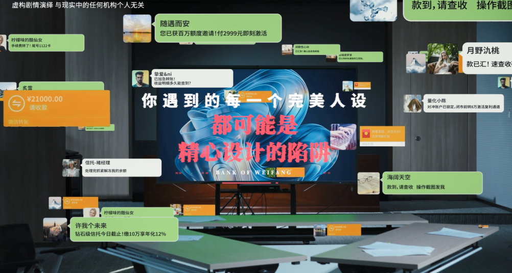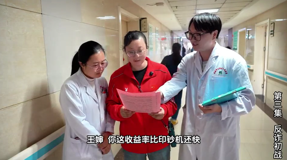 作品《重生之我在醫(yī)界當(dāng)反詐先鋒》借助當(dāng)下最流行的短劇“重生”劇情,揭露了非法集資的真面目,寓教于樂,以輕松詼諧的形式承載了嚴(yán)肅的警示教育內(nèi)涵。