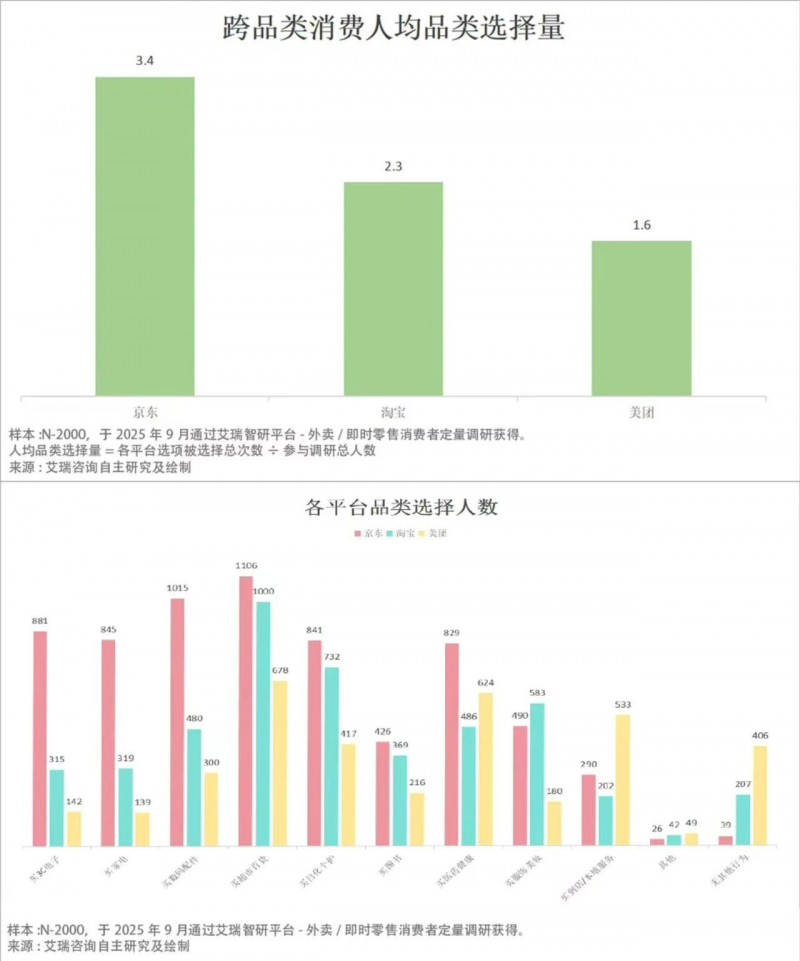 另外一組調(diào)研數(shù)據(jù)揭示了消費(fèi)習(xí)慣重塑的本質(zhì),對(duì)比京東、淘寶與美團(tuán)上進(jìn)行跨品類消費(fèi)傾向的行為,平均一位外賣消費(fèi)者會(huì)留在平臺(tái)上選擇的其他商品種類分別為3.4個(gè)、2.4個(gè)和1.8個(gè),京東和淘寶都以品類優(yōu)勢(shì)呈現(xiàn)出更強(qiáng)的承接優(yōu)勢(shì)。從數(shù)據(jù)來看,京東除了在3C、家電、數(shù)碼等傳統(tǒng)優(yōu)勢(shì)品類承托表現(xiàn)優(yōu)秀外,在超市百貨、個(gè)護(hù)、醫(yī)藥健康等品類上的承接也穩(wěn)穩(wěn)領(lǐng)先,這得益于平臺(tái)長期在品質(zhì)保障、品類豐富度、物流效率及售后服務(wù)上的積累。