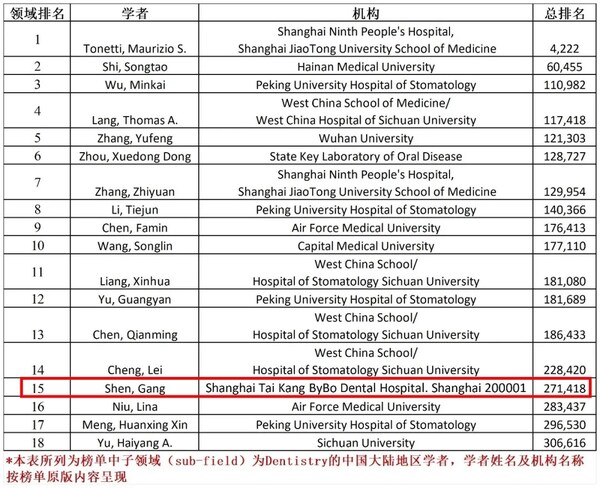 近日,美國(guó)斯坦福大學(xué)基于Elsevier Scopus數(shù)據(jù)發(fā)布了2025《全球前2%頂尖科學(xué)家榜單》(World's Top 2% Scientists)。泰康口腔首席正畸專家、正雅GS技術(shù)與產(chǎn)系研發(fā)首席科學(xué)家沈剛教授連續(xù)三年入選該榜單,并同時(shí)榮登"終身科學(xué)影響力榜單",充分體現(xiàn)了其在口腔正畸學(xué)領(lǐng)域的國(guó)際學(xué)術(shù)影響力與持續(xù)創(chuàng)新的科研實(shí)力。