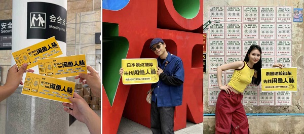 圖左:網(wǎng)友曬出閑魚人脈登機(jī)牌;圖右:世界各地的閑魚人脈