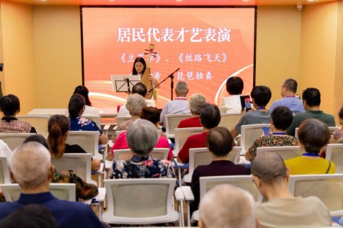 接下來,社區(qū)居民、女青年陳彥浠登臺為大家?guī)砼锚?dú)奏。一曲《蘭花草》旋律悠揚(yáng),串串音符如沾芬芳,似已將人帶入靜謐山谷的蘭花叢中;《絲路飛天》(節(jié)選)則時(shí)而節(jié)奏激昂,仿佛駿馬奔騰,時(shí)而細(xì)膩婉轉(zhuǎn),恰似低訴柔腸。觀者沉浸其中,聞之不禁動容,曲罷余韻徐歇,在座無不擊掌贊嘆良久。
