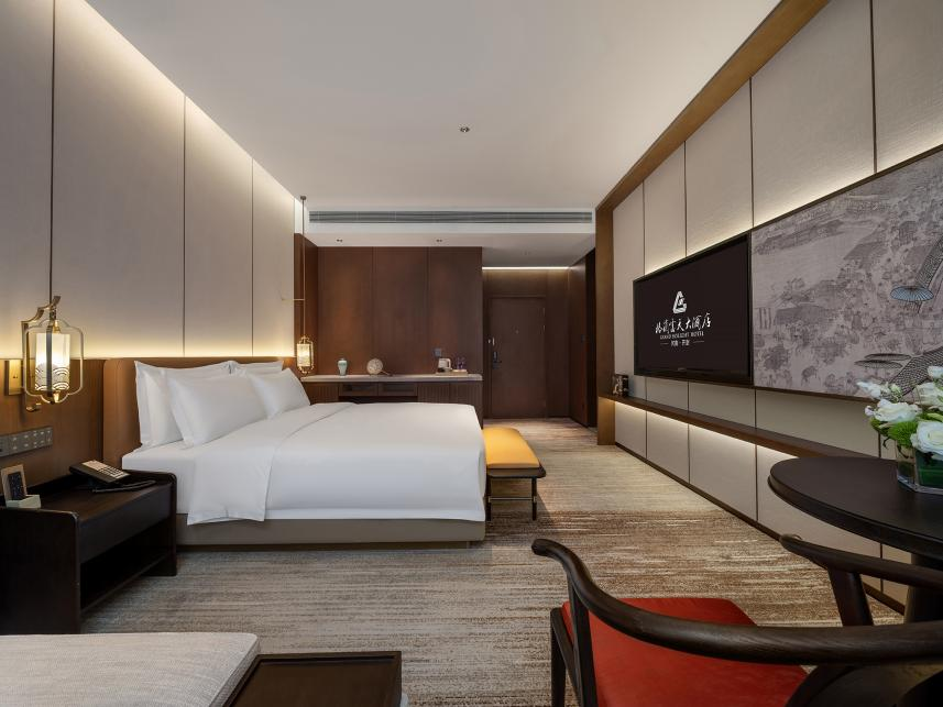 酒店空間設(shè)計以北宋極簡美學(xué)為基底,深度融入在地文化,融匯現(xiàn)代設(shè)計語言,共同演繹“科技隱于形,人文顯于境”的當(dāng)代旅居理念,塑造可感知、可體驗的當(dāng)代宋式生活美學(xué)空間。612間客房類型多樣,從典雅標(biāo)準(zhǔn)間至寬闊套房,將宋式風(fēng)雅與現(xiàn)代舒適融為一體,在滿足不同住宿需求的同時,營造出獨(dú)具文化品位的休憩空間。酒店更配備恒溫泳池與健身中心,致力于在人文底色之上,為賓客打造身心平衡的旅居體驗。