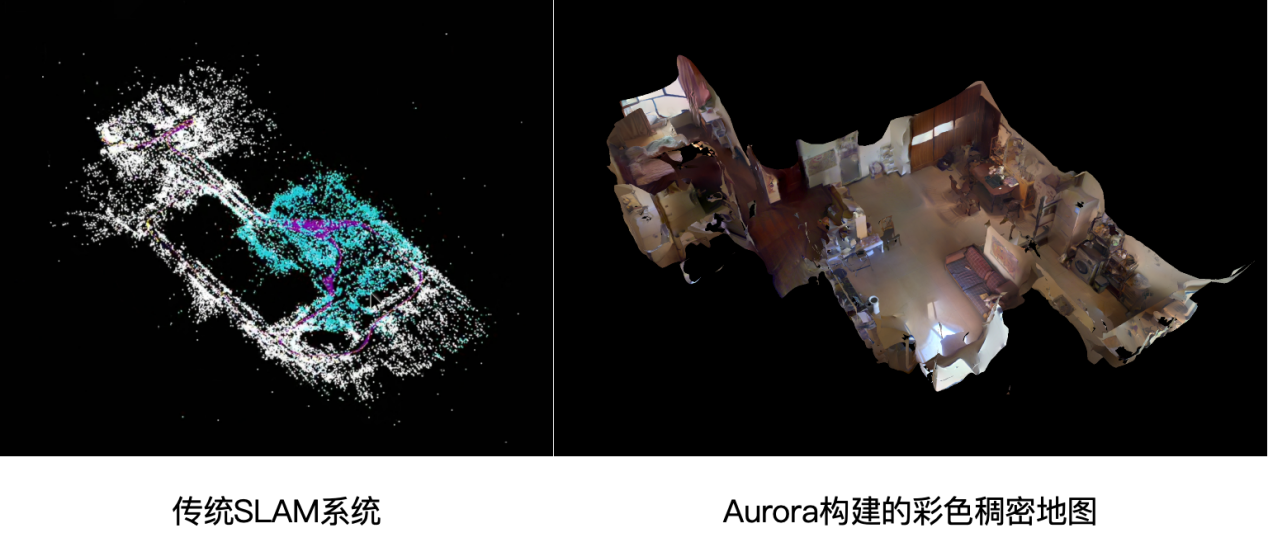 與傳統(tǒng)SLAM只能輸出稀疏、抽象的點云不同,Aurora S能生成帶有真實色彩紋理的稠密3D地圖。結(jié)合實時語義標(biāo)注,機器人不僅能知道“這里有一堵墻”,更能知道“這是一扇白色的門”或“那是一個沙發(fā)”。這才是具身智能與環(huán)境交互所需的世界模型。