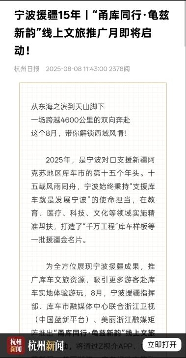 本次“甬庫同行·龜茲新韻”線上推廣月活動,通過主流媒體引領(lǐng)、社交媒體助推、國際傳播賦能與多平臺資源整合,全面呈現(xiàn)寧波與庫車十五年協(xié)作成果與深情厚誼,顯著提升了兩地品牌形象與社會影響力。
