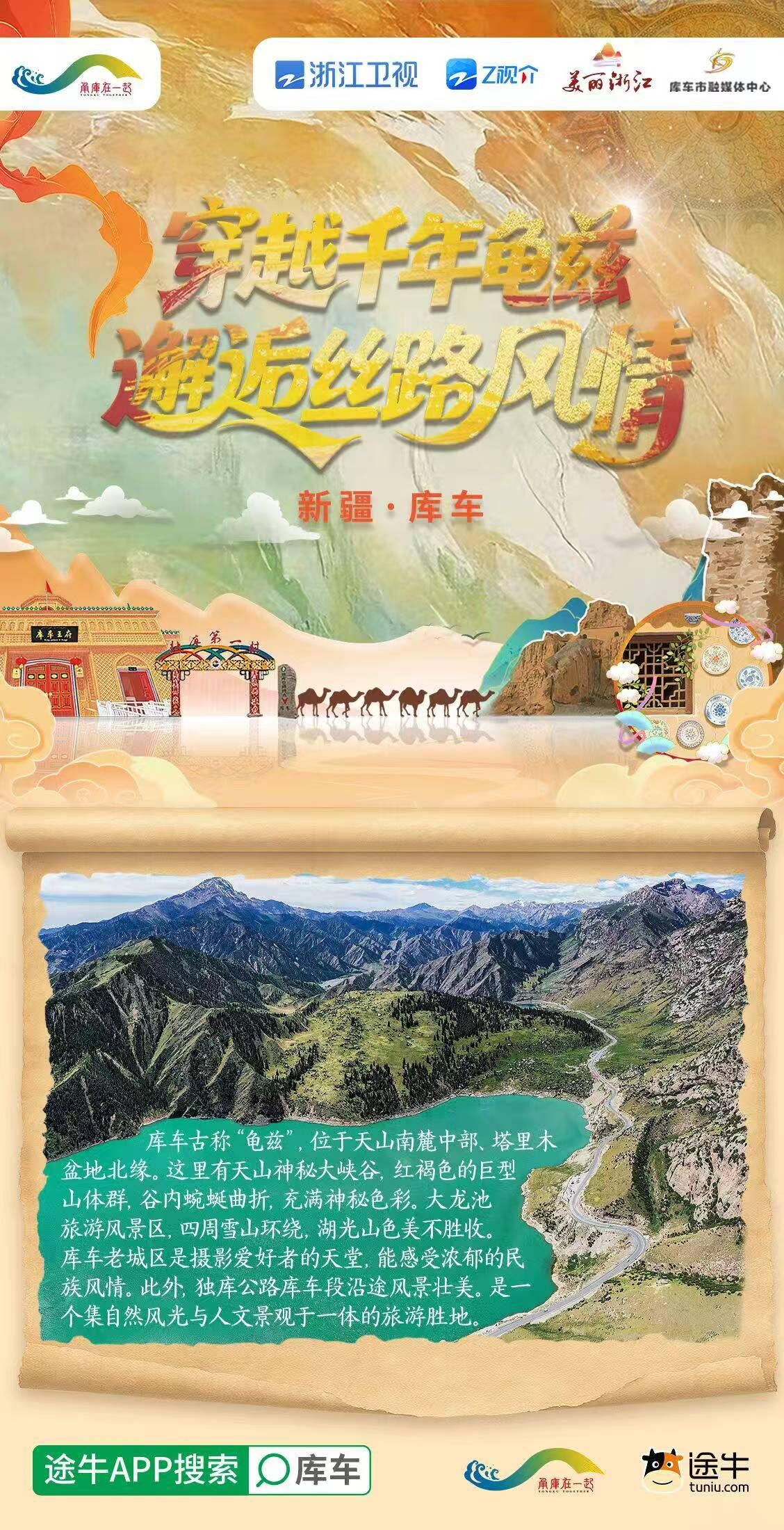Z視介、途牛APP分別設(shè)立庫車文旅專題頁面,有效促進(jìn)旅游資源推廣與轉(zhuǎn)化。